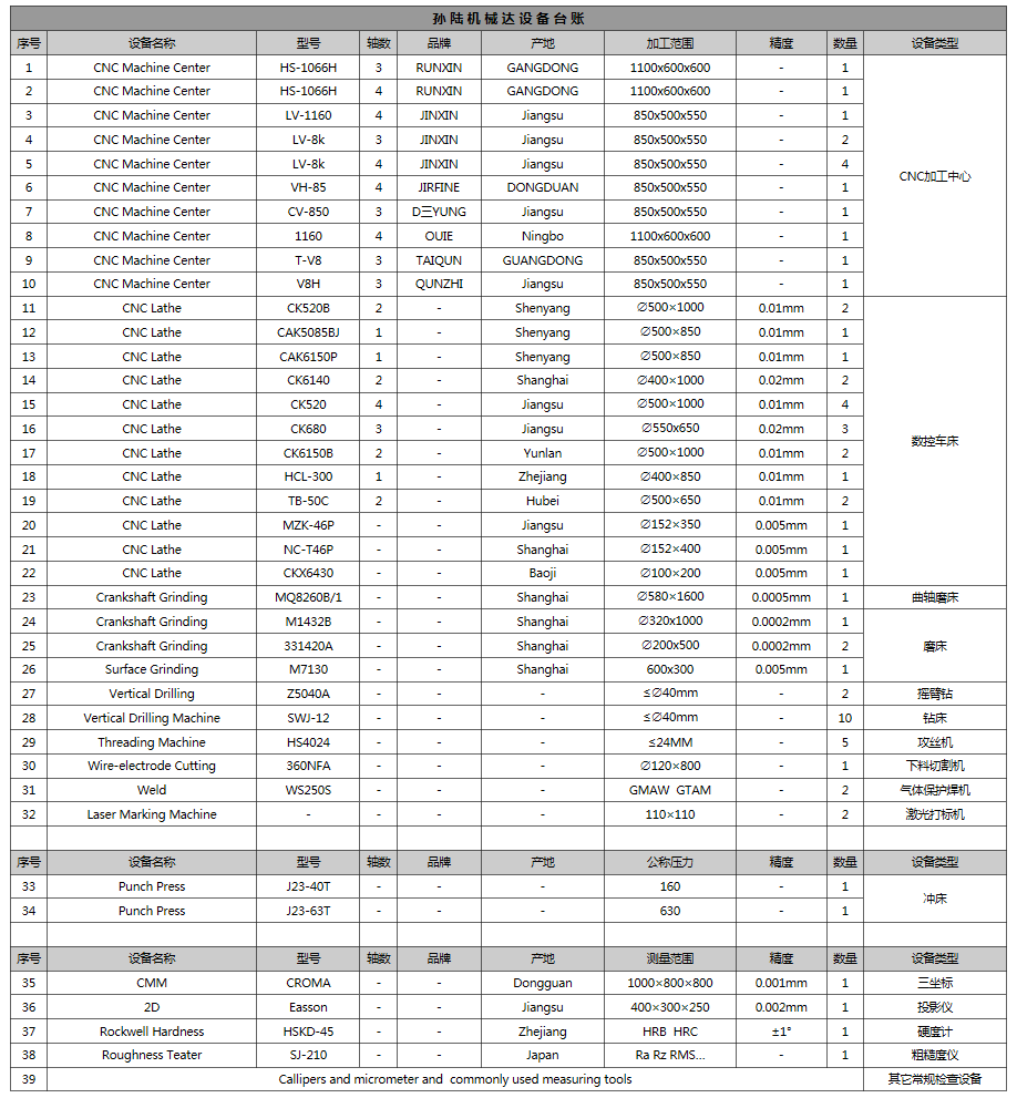 设备清单